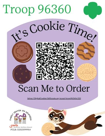 Order cookies online: https://DigitalCookie.GirlScouts.org/scout/troop96360c320
