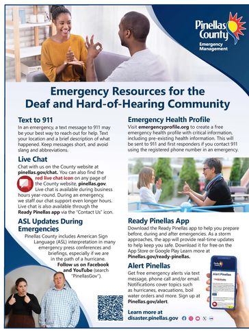 Pinellas County Emergency Management has created an emergency resources poster for the Deaf and Hard of Hearing community.